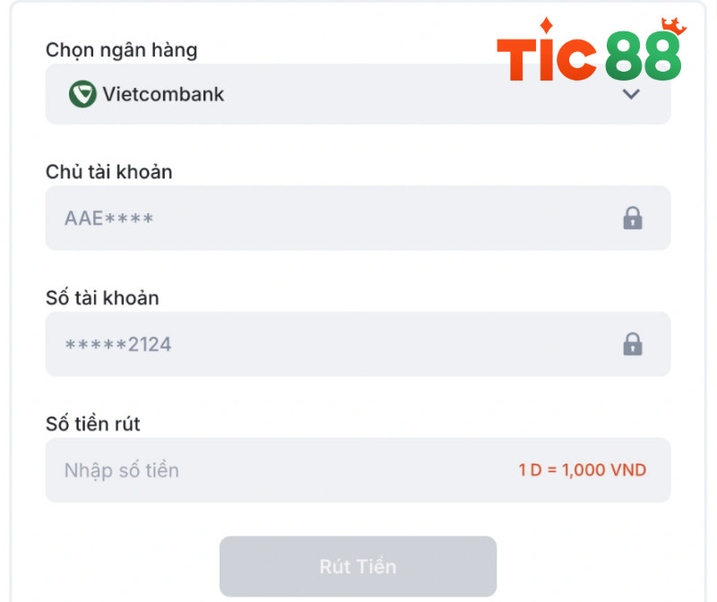 - Chuyển khoản ngân hàng: Rút tiền về tài khoản ngân hàng cá nhân của bạn có thể hiện liên kết với hệ thống Tic88